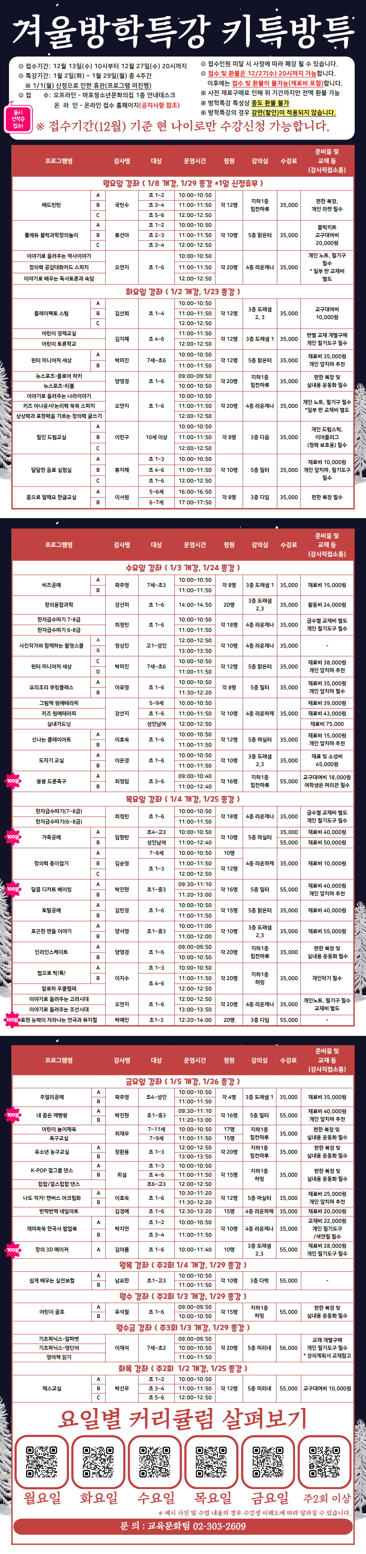 2024 °Ü¿ï¹æÇÐÆ¯° 🎁ŰƯ¹æÆ¯🎁 1Æí°ú 2ÆíÀ» ÀÌ¾î ¿äÀϺ° ÇÁ·Î±×·¥ ¼¼ºÎ³»¿ëÀ» ¾È³»µå¸³´Ï´Ù.