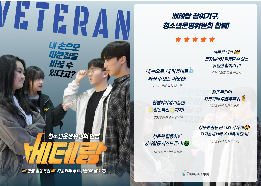 ¸¶Æ÷û¼Ò³â¹®ÈÀÇÁý ½Ã¼³ ¿î¿µ¿¡ ÀÖ¾î û¼Ò³âÀÇ ¿å±¸¿Í ÀǰßÀ» ¹Ý¿µÇØ Ã»¼Ò³âÁß½ÉÀÇ ½Ã¼³·Î ¹ßµ¸¿ò ÇÒ ¼ö ÀÖµµ·Ï Çϴ Ȱµ¿