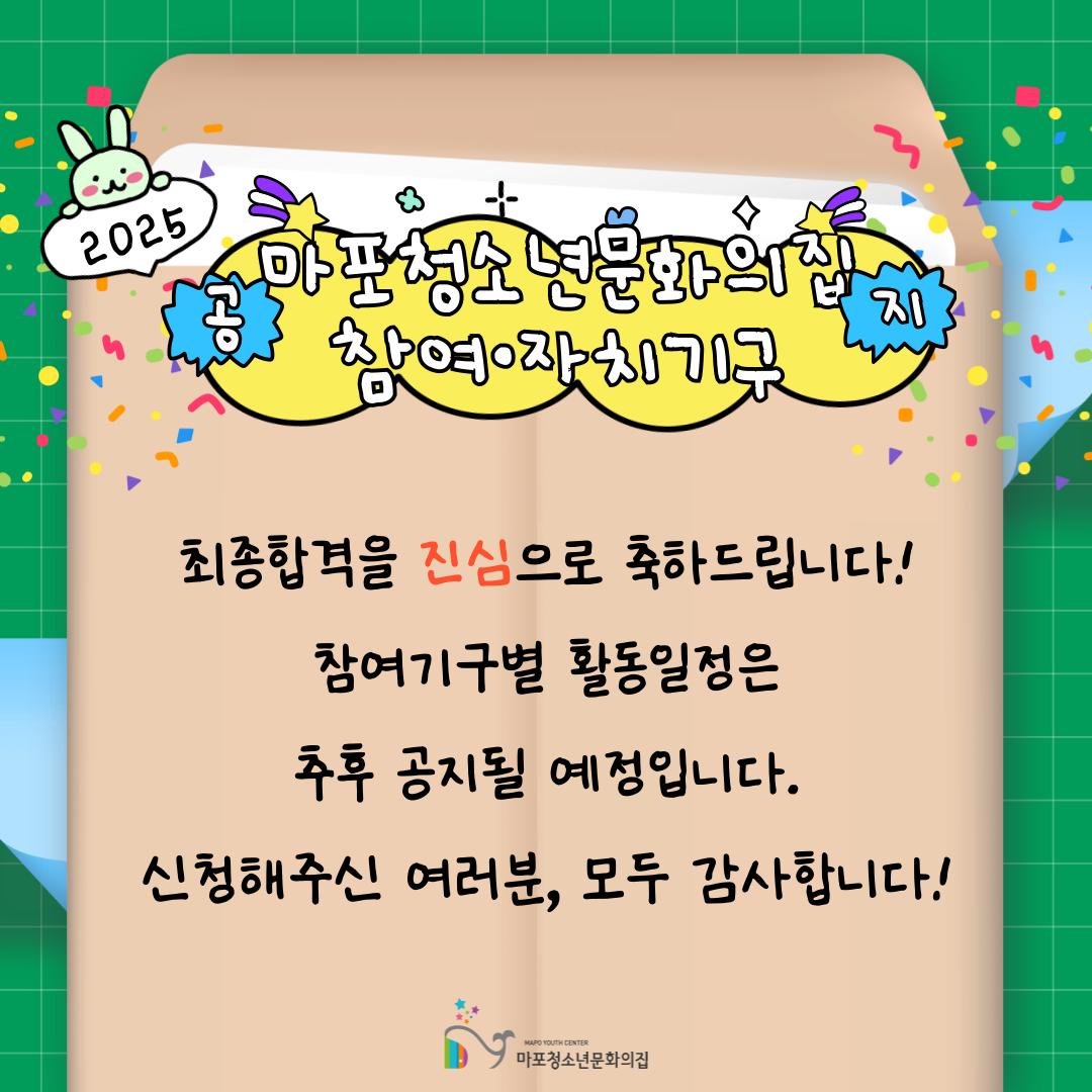 | [°øÁö] 📢 2025³â û¼Ò³â Âü¿©¡¤ÀÚÄ¡±â±¸ ÃÖÁ¾ÇÕ°ÝÀÚ ¹ßÇ¥📢 | ||