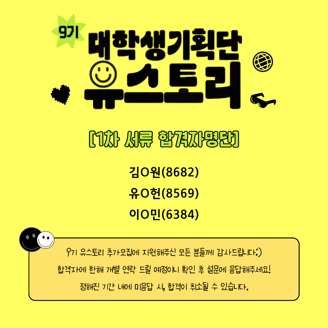 | [°øÁö] 2025³â 9±â ´ëÇлý±âȹ´Ü 'À¯½ºÅ丮' Ãß°¡¸ðÁý ¼·ù ÇÕ°ÝÀÚ ¹ßÇ¥ ¹× ÀÎÅÍºä ¾È³» | ||
