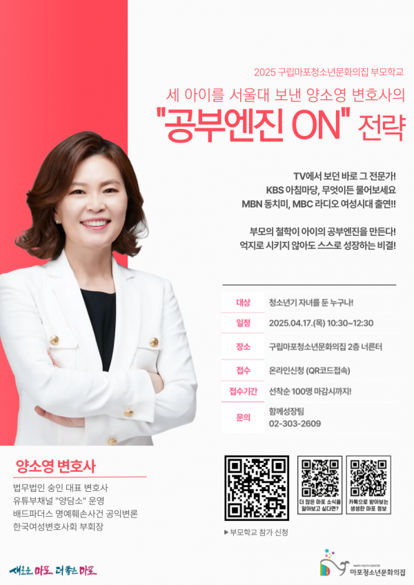 ±¸¸³¸¶Æ÷û¼Ò³â¹®ÈÀÇÁý¿¡¼´Â 2025 ºÎ¸ðÇб³ ¼¼ ¾ÆÀ̸¦ ¼¿ï´ë º¸³½ ¾ç¼Ò¿µ º¯È£»çÀÇ "°øºÎ¿£Áø ON" Àü·« °¿¬À» ÁغñÇß½À´Ï´Ù. Ä¡¿ÇÑ ¹ýÁ¶ÀÎÀÇ ±æÀ» °ÉÀ¸¸ç ¼¼ ¾ÆÀ̸¦ Ű¿î ¾ç¼Ò¿µ º¯È£»ç! ¾ÆÀ̸¦ ¸ô¾Æ¼¼¿ì´Â ´ë½Å ½º½º·Î ¼ºÀåÇÒ ¼ö ÀÖµµ·Ï µ½´Â ¡®Á¸Áß À°¾Æ¡¯¸¦ ½ÇõÇϸç, ¼¼ ¾ÆÀÌ ¸ðµÎ ¼¿ï´ë¿¡ º¸³Â½À´Ï´Ù. À̹ø °¿¬¿¡¼´Â ºÎ¸ðÀÇ Ã¶Çаú ¿øÄ¢ÀÌ ¾ÆÀÌÀÇ °øºÎ ¿£ÁøÀ» ¾î¶»°Ô °¡µ¿½ÃŰ´ÂÁö, ºÎ¸ð·Î¼ °ÞÀº °í¹Î°ú ½ÇÀü À°¾Æ ³ëÇϿ츦 °øÀ¯ÇÕ´Ï´Ù. Á¸Áß¹Þ´Â ¾ÆÀÌ´Â ½º½º·Î ¼ºÀåÇÕ´Ï´Ù. ÇÔ²² ¹è¿ì´Â ½Ã°£À» °¡Á®º¸¼¼¿ä!
