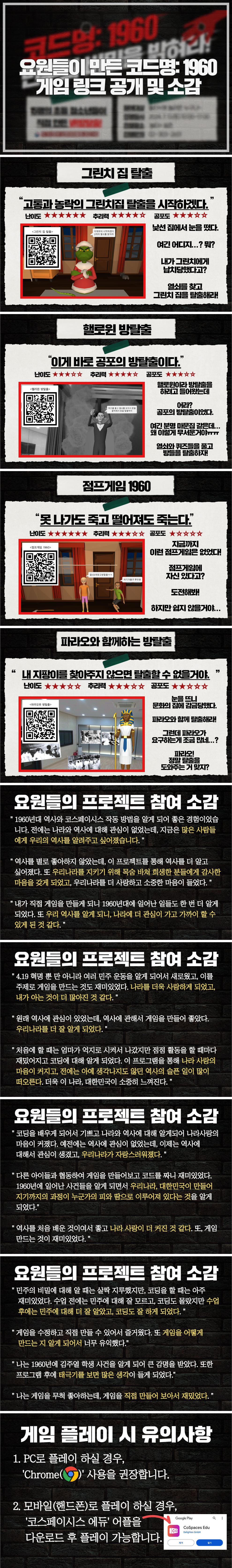 ¿ì¸® ¿ä¿øµéÀÌ ¿½ÉÈ÷ ¸¸µç 'ÄÚµå¸í: 1960 ¹ÎÁÖÀÇ ºñ¹ÐÀ» ¹àÇô¶ó!'VR¹æÅ»Ãâ °ÔÀÓÀ» üÇèÇØº¸½Ç ¼ö ÀÖ°Ô ¸µÅ©¿Í ¹Ù·Î°¡±â QRÄڵ带 °øÀ¯ÇÕ´Ï´Ù! °ÔÀÓÀ» Áñ±â¸é¼ ¿ª»ç°øºÎµµ µÇ´Ï ¸¹À̸¹ÀÌ Âü¿©ÇØÁÖ½Ã±æ ¹Ù¶ø´Ï´Ù:)