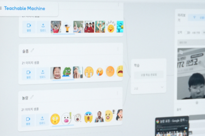 4ȸÂ÷¿Í 5ȸÂ÷¿¡¼´Â AI Àü¹® °»ç´Ô°ú ÇÔ²² Teachable Machine(Ƽóºí ¸Ó½Å)°ú Scratch(½ºÅ©·¡Ä¡)¿¡ ´ëÇØ¼ ¹è¿ì¸ç ½Ç½ÀÇØº¸¾Ò½À´Ï´Ù! Á÷Á¢ ¶óº§¸µÇÑ µ¥ÀÌÅͰ¡ ÄÚµùÀ» ÅëÇØ ½ÇÁ¦ AI °á°ú¹°·Î ¸¸µé¾îÁö´Â °úÁ¤À» º¸¸ç,