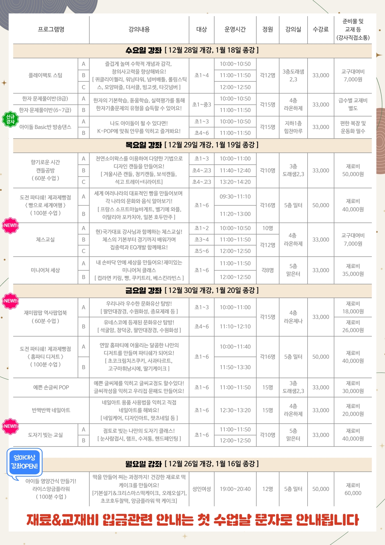 📌📌°Ü¿ï¹æÇÐÆ¯° ¿î¿µ±â°£📌📌 - 2022³â 12¿ù 26ÀÏ(¿ù) ~ 2023³â 1¿ù 20ÀÏ(±Ý)