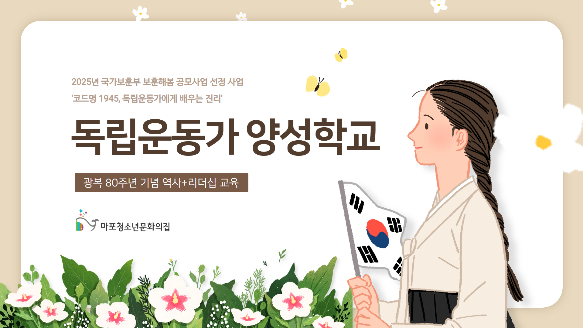 ¸¶Æ÷û¼Ò³â¹®ÈÀÇÁýÀº ±¹°¡º¸ÈƺΠ¡¸º¸ÈÆÇغ½ °ø¸ð»ç¾÷¡¹ ¿ì¼ö»ç·Ê ±â°üÀ¸·Î ¼±Á¤µÇ¾î ÃÊµî ´«³ôÀÌ¿¡ ¸ÂÃá µ¶¸³¿îµ¿°¡ ¸®´õ½Ê ±³À°ÀÚ·á(PPT)¸¦ °³¹ßÇÏ¿´½À´Ï´Ù. °¢ Çб³¿¡¼ ÀÚÀ¯·Ó°Ô Ȱ¿ëÇÏ½Ç ¼ö ÀÖµµ·Ï ±³À°ÀڷḦ °øÀ¯µå¸®¿À´Ï, ÇÐ±Þ ¼ö¾÷ ¹× âü Ȱµ¿ µî¿¡ Âü°íÇØÁֽñ⠹ٶø´Ï´Ù.